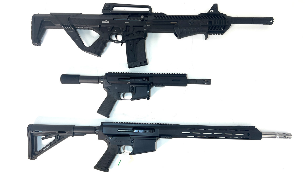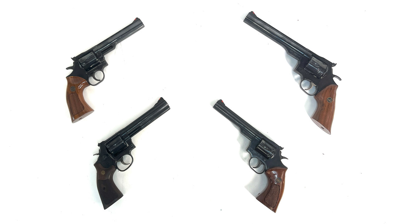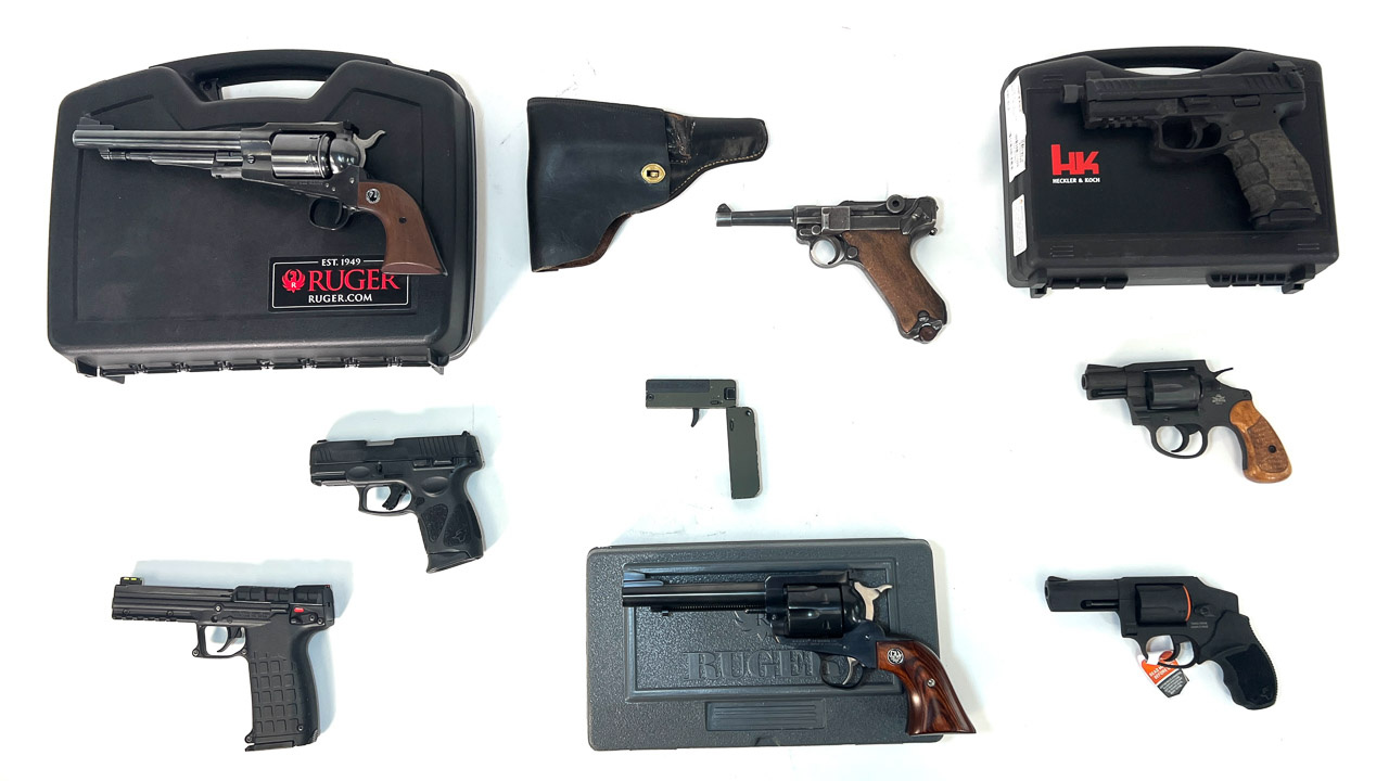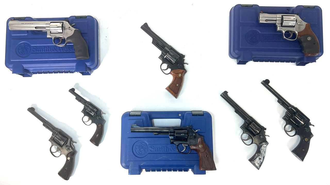 Smith & Wesson Models: (2) 686-6, 357 mag.; 28-2, 357 mag.; 48-7, 22 mag.; 586-8, 357 mag.; 14-3, 38 sp.; Regulation Police, 38 S&W; Hand Ejector, 45 cal.; M&P, 32 WCF; (2) Shield EZ 30 Super Carry; 40C, 40 S&W; Bodyguard, 380 cal.; (2) M&P, 22 & 45 cal.; M&P Shield, 9 mm; 457, 45 cal.