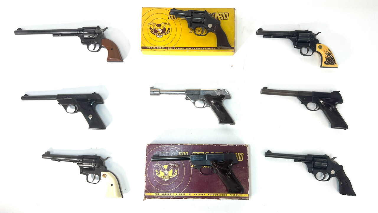 Hi Standard Model: (2)Double Nine, 22 cal.; (2) Sport King, 22 cal.; Field King, 22 cal; Long Horn, 22/22 mag.; Super Matic Citation, 22 cal.; Sentinel, 22 cal.