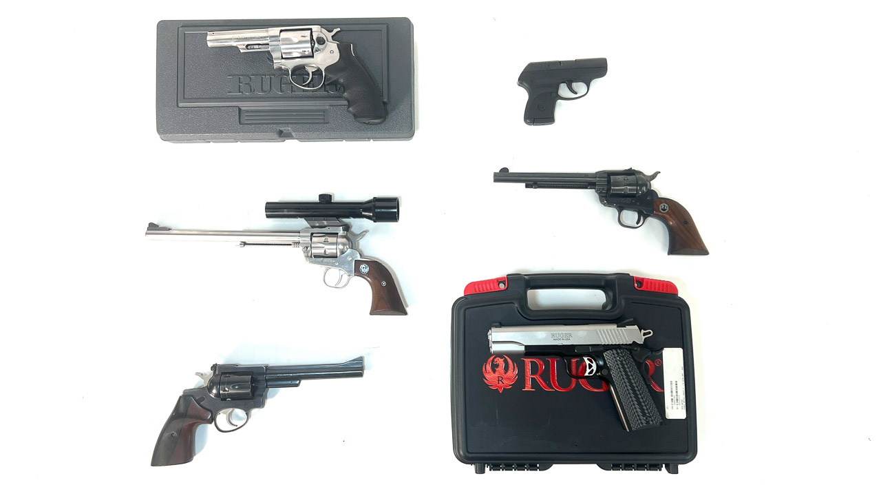 Ruger Model: (2)Single Six, 22 cal.; SR 1911, 45 cal.; Service Six, 357 mag.; Security Six, 357 mag.; LCP, 380 cal.; NM Super Blackhawk, 44 mag.; Old Army, 45 cal.