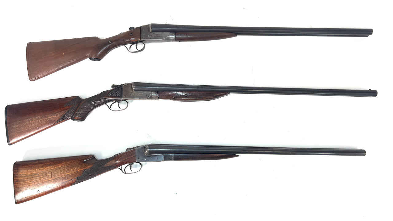 Ithaca Model: 37 Featherlight, 12 ga.; Hammerless, 16 ga.; (2) SxS, 12 ga.